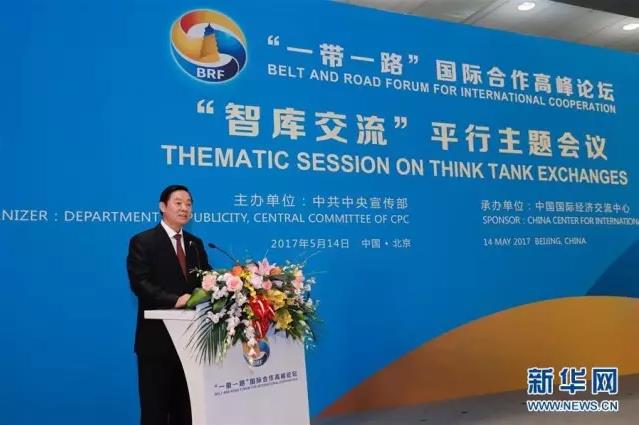 中共中央政治局委员、中央书记处书记、中宣部部长刘奇葆出席“一带一路”国际合作高峰论坛“智库交流”平行主题会议,发表题为《携手打造“智力丝绸之路”》的主旨演讲。
