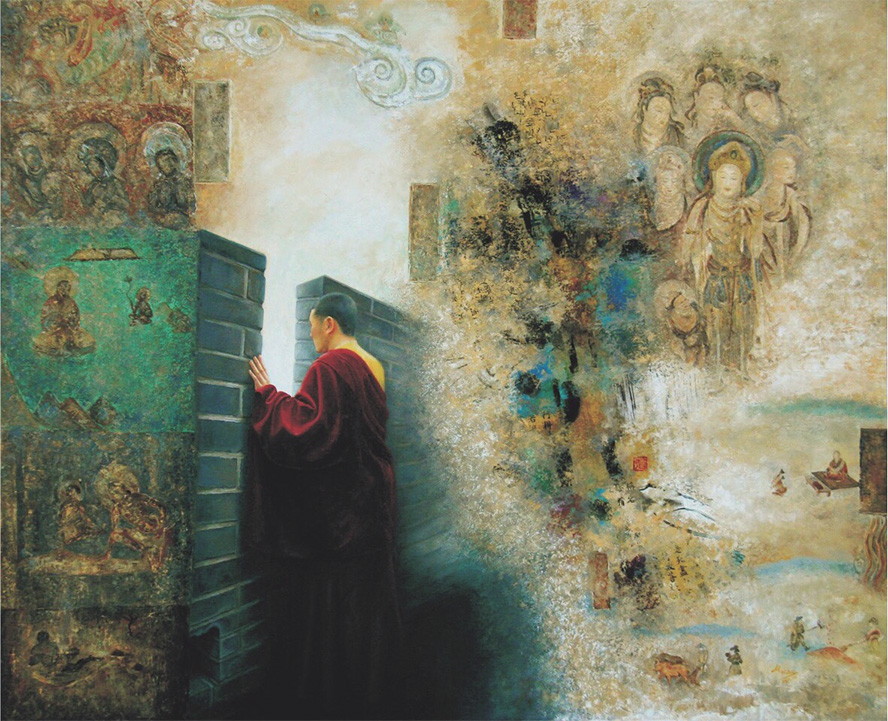 周娜的绘画主要取材于丝绸之路以及藏传佛教文化,而这其中的代表即为敦煌壁画、古格壁画和龟兹壁画。由于地域和历史原因,这一区域的绘画深受古希腊和罗马绘画影响。尤其是随着马其顿国王亚历山大东征,希腊人将其生活方式和文化传入东方,经此途径,东西方文化获得了直接交流和融合的机会。周娜的画展就是从这里感悟提炼出崭新的东方美学元素,用多种绘画语言表达对美的认知,从而形成自己独特的艺术风格。 (晶 晶)