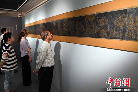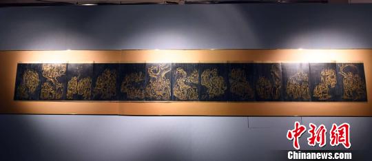 展出的《五百阿罗汉图》漆缣赤金白描绘本,上绘五百罗汉,“其造形丰厚为体,形貌奇古,殊相堂堂,迥异前人……”