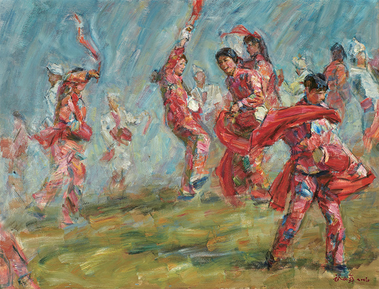 开幕式上,武永年将《信天游》等24幅作品捐献给中国美术馆永久收藏。展览将持续至5月21日。图为武永年作品《欢乐的女孩》。 (周 茉)