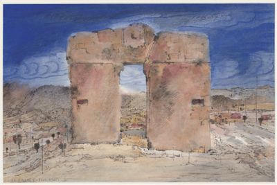 玻利维亚太阳门远古第一束阳光 (中国画) 卢禹舜
