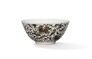 清雍正墨彩缠枝菊纹茶碗。 (佳士得供图)