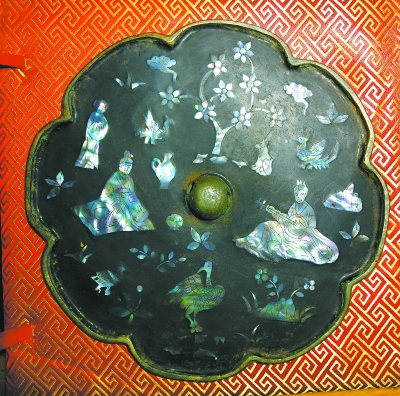 唐代嵌螺钿高士听琴纹青铜八角镜
