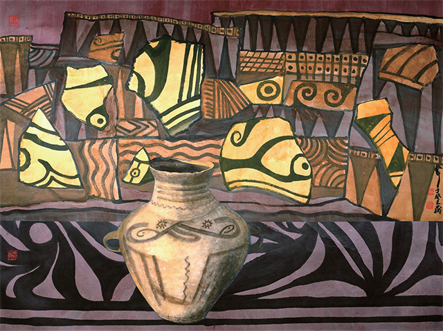 周韶华1950年毕业于中原大学美术系。从上世纪80年代开始,他多次沿黄河和长江溯源考察,行程约20万公里,创作了大量面目一新、具有深刻文化意蕴的优秀作品。中国美协主席刘大为认为,周韶华用中国的材料、中国的方法,在中国文化的基础上进行创新,形成了鲜明的艺术风格。中国国家画院院长杨晓阳说,周韶华是一位具有文化自觉和文化担当的艺术家。在中国美术处于中西交汇、新旧转型的节点时,他和同辈的艺术家们自觉承担起了为中国当代美术探索出一条道路的责任。本次展览将持续至6月12日。图为周韶华作品《家园系列之一》。 (小 辰)