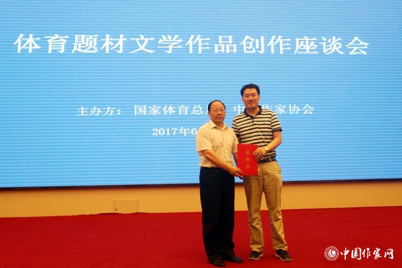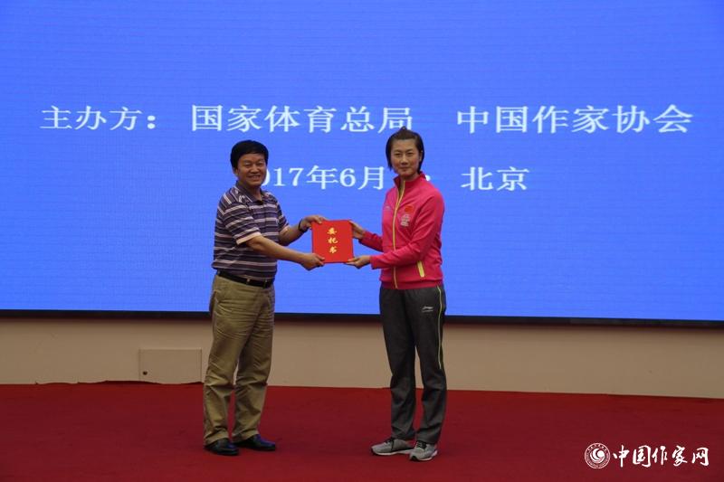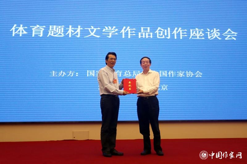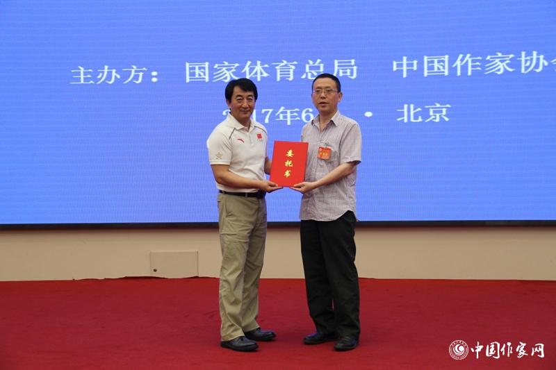 国家体育总局群众体育司司长刘国永向作家关仁山(顾超代表)递交创作委托书 凤凰彩票平台登录入口 超侠 摄