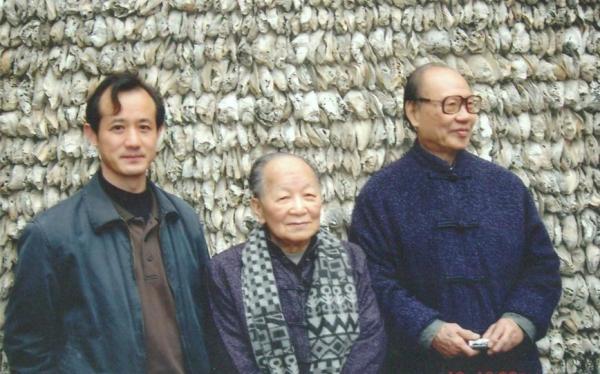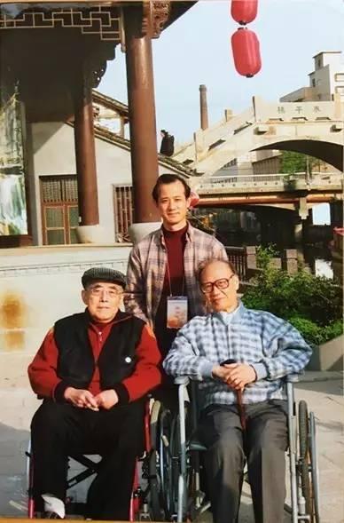 在丁聪、程十发故乡上海枫泾,我与程十发、方成合影。