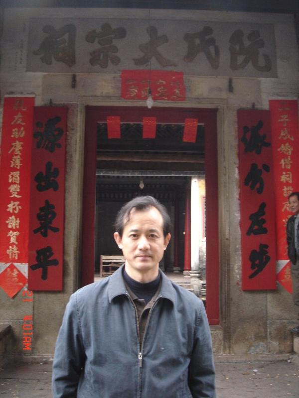 2007年1月陪同黄苗子、方成回中山拍摄“回家”,后面是用牡蛎壳修建的墙。