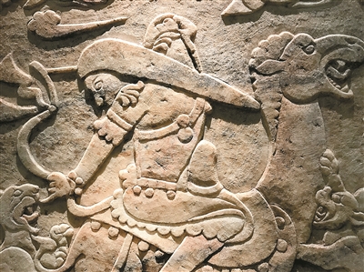 本次展览“重头戏”“虞弘墓汉白玉石椁”上的精美雕刻。 高雷/图