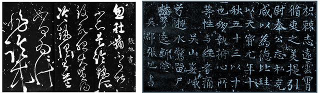 左:张旭《肚痛帖》 右:张旭《严仁墓志》