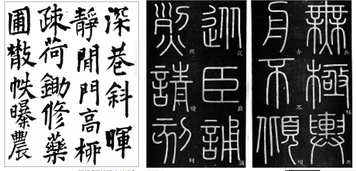 左:王铎《王维五言诗卷》 右:徐铉摹《峄山刻石》