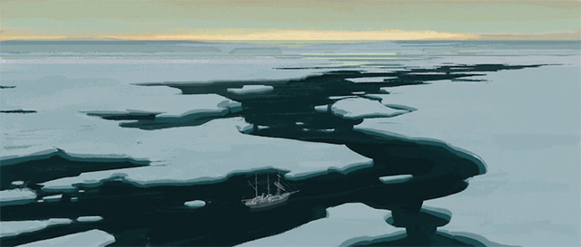 萨莎拿起祖父的探险日记之后,冰层断裂,两个巨大的冰层逐渐远离,萨莎就这样和祖父做了最后的道别。