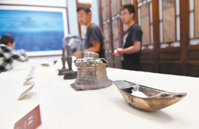 何刚捐赠给故宫的银錾刻船。 新华社记者 金良快摄
