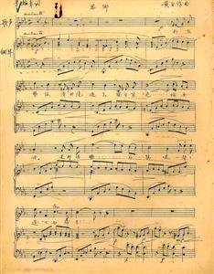 ◆黄自《思乡》手稿(部分),摘自《黄自先生诞辰110周年珍贵文献档案展展览手册》