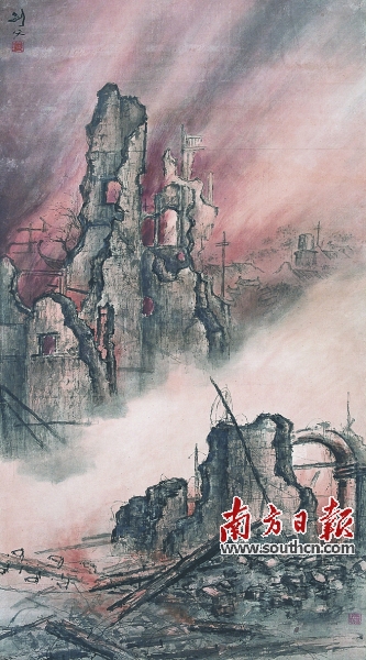 东战场的烈焰(国画) 高剑父 作