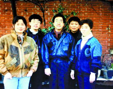 ▲左起陈逸鸣夫妇、陈逸飞、陈逸鸣姐夫、姐姐在北 京东路159号前留影。 (图片由陈逸鸣提供)