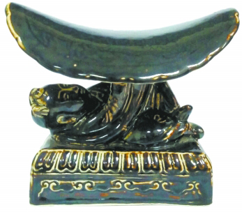 笔者没有专题收藏瓷枕,但每见制作精美的宋代瓷枕,往往不忍放手,特别是近十年来新发现的河南鲁山段店窑中,有不少宋代的定瓷,其中的瓷枕品种很多,品质也很高。如图中的酱釉孩儿荷叶枕,就十分珍稀。瓷枕塑一个小童仰卧擎一片荷叶,以荷叶作枕面,构思奇特,富有动感。枕面还暗刻卷草纹,座台四周剔莲花如意图案,集多种工艺于一体。以荷花为题材的瓷枕,在夏日中给人以清凉的感觉,宋人就有咏荷花诗句:“暑天胜似凉天好,叶气过于花气清”。荷叶的清香之气比荷花的香气还要浓郁清爽,不难想象头枕这片荷叶的凉爽感觉。
