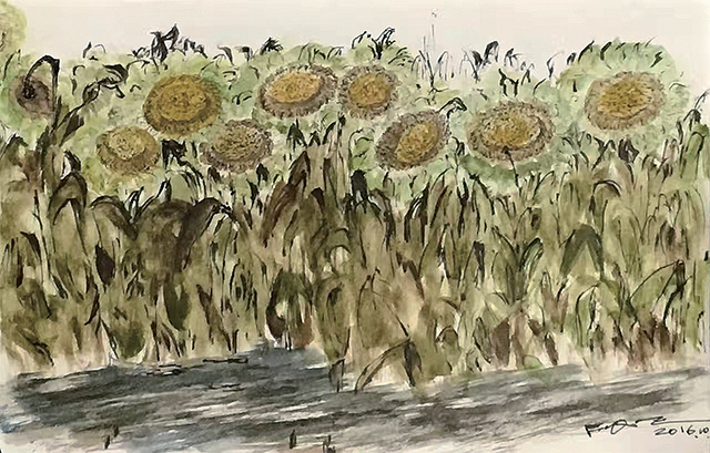 曾经,在参加世界各地的艺术活动过程中,我利用工作间隙,不辞辛苦地奔波于当地的艺术博物馆、历史博物馆、民俗文化博物馆、战争纪念馆、船舶、乐器、陶瓷、服饰、武器等博物馆,观赏世界名画,领略一个国家、一个民族的过去、现在和未来。一个博物馆可以连看三天、四天,下次再去到这个国家这个城市,继续去看,一个博物馆去看过三四次、七八次。有过不少回,站在一幅喜欢的绘画作品前想,我理解了这幅作品,却不能够画出我理解的东西。即便是简单之极的笔触,自己也做不到。某一天,我中午写字,写得手松动了,想画画了。这之后,一面工作,一面写作、画画。我想画心里萌发的东西,想画感觉到的东西,想画在灵魂里窜动的东西,想画我发现的东西、思想的东西,想画能够带给我鼓励的东西,想画能够进到人心里的东西。我知道,我仍然是懵懂的,我的路还长着呢,我要学习和领会的东西多着呢,要做的功课也多着呢。我在学习和尝试,怎样画出来经过了我的心的东西。