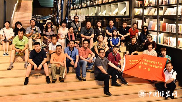 参访团在雅昌文化集团的“世界最大艺术图书墙”前合影留念