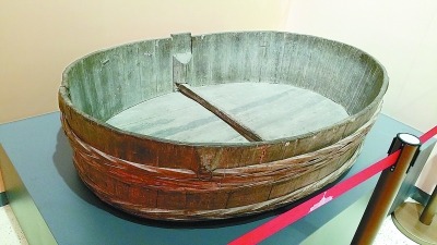 在“夺取全国解放战争胜利”展区,一只看似普通的大木盆也有着一番传奇经历。这只长1.7米,宽1.15米,高0.38米的大木盆,是华东野战军著名侦察英雄齐进虎等在渡江战役前夕到黑沙洲侦察敌情时用过的渡江工具。