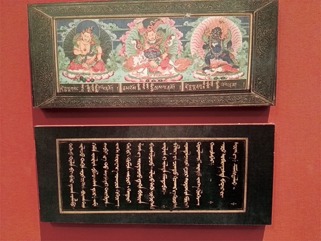 东巴文《神路图》,东巴绘画艺术中的珍品。它既受藏传绘画艺术影响,又具有纳西族传统风格特色。