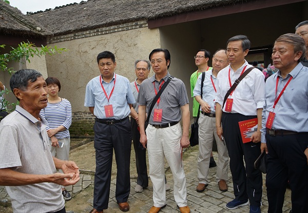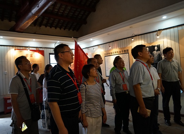 采访团在淮海战役总前委会议暨华东野战军指挥部旧址前合影