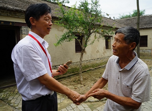 文昌宫不远处,便是淮海战役总前委指挥部的另一处旧址——小李家。小李家是当时濉溪县的一户姓李的人家。13日,采访团到小李家的时候,一位叫李松林的老人正在院子里打扫房屋,老人是这个房子的老房东,当时就是他的父亲李光者主动把房子让给解放军的。现在的小李家已经成为红色革命根据地,每天都会有人前来参观,李松林几十年来坚持在这个院子里为大家作义务讲解。老人告诉大家,当年刘伯承、邓小平、陈毅从文昌宫转移后,就在这里工作和生活。“我父亲告诉我,邓小平同志还抱过我呢,只是没有留下照片。”老人说这句话时,脸上露出憨厚而自豪的笑容。“我也姓李,你们家曾为革命、为国家付出这么多,是咱们李姓的骄傲”,团员李西岳与老人紧紧地握着手说。