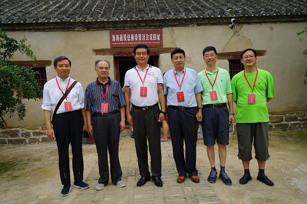 在蔡洼会议旧址前合影(从左至右依次为:张柯、武立金、马誉炜、关仁山、杨扬、陈丽伟) 摄影:樊金凤