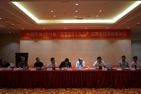 12日下午,凤凰彩票“迎接党的十九大暨纪念中国人民解放军建军90周年”主题采访团在安徽萧县举办了一场座谈会,邀请安徽当地文史专家为作家代表们讲述淮海战役。