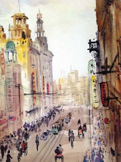 哈定经典水彩画《繁忙的南京路》。(展方供图)