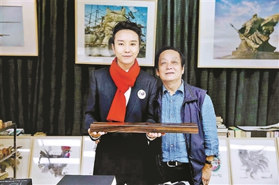 韩美林向李玉刚回赠了一对阴沉木镇纸,他说:“艺术家是普通演员的升华,有见识是艺术造诣的升华,李玉刚这么年轻就悟出了这个道理,不容易。我在‘文化大革命’之后没收过徒弟,但今天感动于他的见解和精神,所以收他为徒。”