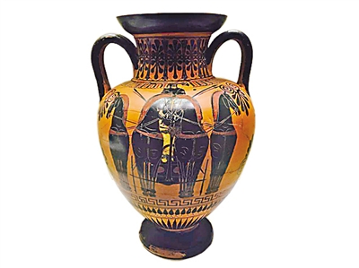 安发拉罐 正面描绘的是乘坐四马二轮战车前往战场的勇士