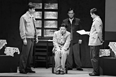 说起老舍话剧,许多人会想起大名鼎鼎的《茶馆》、《龙须沟》,《西望长安》是鲜有问津的一部。《西望长安》创作于1956年,61年来只上演过两个版本,上次见诸舞台还要追溯到十年前葛优的演绎。《西望长安》是少见的以“反派”为主角的作品,主人公栗晚成脱胎于一个真实存在的反革命分子李万铭。李万铭曾冒充战斗英雄,四年中跑过十几个城市,窃取了国家机关的重要职务,同样的,以他为原型的栗晚成也是一个不折不扣的骗子。他走路一瘸一拐,说话结结巴巴,但这丝毫不妨碍他用一张嘴“忽悠”来了人们的尊重和单纯姑娘达玉琴的爱情。栗晚成无疑是一个需要点儿喜剧色彩的人物,尤其是在葛优版的栗晚成深入人心之后。难以找到合适的演员人选或许也是《西望长安》很少被搬上舞台的原因之一。