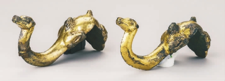 鎏金青铜骆驼形钮钟架构件(西汉)