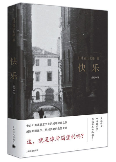 《快乐》是日本新锐女作家青山七惠完成于2013年的长篇小说,最初刊载于日本《群像》杂志,紧接着由讲谈社出版了单行本和文库本。今年6月,上海译文出版社引进出版了简体中文版,由岳远坤翻译的《快乐》通篇都充满了或明或暗的欲望。日文版的腰封上写着:“疯狂的爱、中毒的欲望、燃烧不尽的孤独”,这是一篇“以鲜烈笔致描写的官能心理小说”。欲望,在慎司身上表现为设法让妻子出轨的畸形性欲;在德史那里是无底洞般的贪婪食欲;在耀子内心是重返十九岁狂乱之夜的渴求;在芙祐子眼中则是紧紧抓住丈夫的强烈期盼;此外还有四位主人公所遭遇的各色人等的各类欲望……