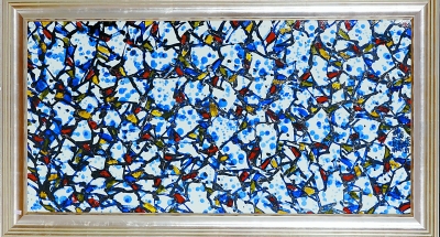 鉴于此,我的瓷画创作是以要传统为基础的,但仅仅要传统是远远不够的,要传统只是前提基础,不是目的;突破传统,创新突破才是目的。因此还必须与“要现代”结合起来。“要现代”就是要发挥传统基因,表现现代审美,更新艺术观念,构建新的形式。以“不与人同”的方式,寻找新的意、新的境、新的形、新的线。具体到创作中,就是以现代的观念筛选民族艺术中的现代因子,以民族的视角汲取西方现代艺术中符合民族审美的有益元素。所以在我的创作语言里,满构图、平面化、构成性、等值性、装饰性就成了我追求现代形式感的要素。凡是具有感染力的作品,其现代形式都是新颖的、鲜明的、强烈的、震撼的;看了使人耳目一新,为之一震,给人以视觉上乃至心灵上特别的冲击。