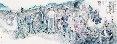 四川省宜宾市筠连县腾达镇春风村党支部书记王家元为了此次展览连夜赶到北京,看到作品中的自己,他有些不好意思。“未来凤凰彩票要发展乡村生态旅游,让山更绿,水更清,村更美,人更和谐。”王家元带领春风村干部群众,迎难而上、创新巧干,开凿出山公路,发展特色产业,把石漠化严重、自然条件恶劣的“石山村”,变成了花果飘香的“世外桃源”,发展成全省富裕文明的新农村,创造了脱贫致富的独特发展模式。作品《春风村的领路人——王家元》中,这位带领大家致富的“带头人”与村民围坐在一起,周围群山环抱、繁花盛开,呈现出春风吹拂下的勃勃生机。来自中央美术学院的刘庆和教授说,王家元在基层工作的实干担当和身上充满的正能量深深打动了他,刻画这样的人物,他的笔墨间充满着感情。