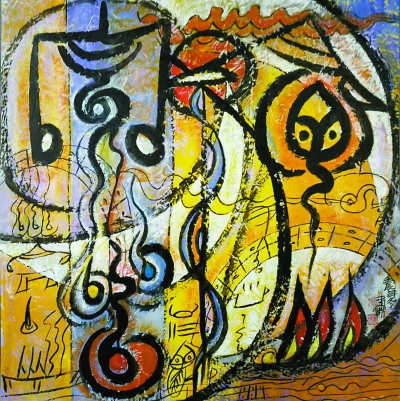 张春和:我觉得我就是为艺术而生的,这一点也不夸张。我出生在号称“长江第一湾”的金沙江畔石鼓镇竹园村里,这里的奇山异水给了我艺术灵感。我从小就能歌善舞,初中刚毕业,就在丽江歌舞团干了两年。会拉二胡,还参加了歌曲创作班。我还亲自上过越战战场,感受了战争的残酷性。20岁本来有机会选送到南京政治学院学习,有提干的机会,但我最后放弃了,因为我清醒地认识了自己,于是回到地方考艺术学院,决定一辈子从事艺术工作。我27岁考上中央民族大学,此前没有见过世面,觉得自己的画也很牛,到了大学才发现,自己太渺小了,开始静下心来像干的海绵一样汲取艺术养分,包括我的老师刘秉江等也给了我很大的帮助和启发。1987年毕业时,我已累计创作了六十多幅画作,并成功在中国美术馆举办了第一次个展。