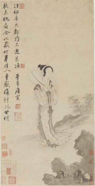 ÉϺ£²©Îï¹ÝÊé»Ñо¿²¿Ö÷ÈÎÁèÀûÖиæËß¼ÇÕߣ¬Ð³ÂÁÐÖÐÊ×´ÎÂ¶ÃæÒÔ¼°Ðí¾ÃδչµÄչƷÓÐ25¼þ£¬ÆäÖÐ×îÊÜÒµ½ç¹Ø×¢µÄιýÓÚÌÆ²®»¢µÄ ¡¶Çï·çæýÉÈͼÖá¡·¡£¡°ÕâÊÇÖйú¹Å´úÊé»Ê·ÉÏÈÆ²»¹ýÈ¥µÄÒ»¼þ×÷Æ·£¬Ëµµ½ÌƲ®»¢µÄˮīÈËÎﻣ¬ÈËÃǵÚÒ»¸öÏëµ½µÄ¾ÍÊÇËü¡£¡±ÁèÀûÖÐ˵£¬ÔÚ¡°Ã÷Ëļҡ±ÖУ¬ÌƲ®»¢ÊǸöÐÔ×îÏÊÃ÷µÄÒ»¸ö£¬ËäÓС°½ÄϵÚÒ»·çÁ÷²Å×Ó¡±ÃûºÅ£¬µ«Ò»Éú¿²¿À²»µÃÖ¾¡£¡¶Çï·çæýÉÈͼÖá¡· Ãè»æÁËÒ»ÃûÊÖ³ÖæýÉÈØùÁ¢ÔÚÇï·çÖеÄÃÀÈË£¬Ëý²àÉíÄýÍû£¬Ã¼Óî¼ä΢¶âêã¯ÉñÉ«¡£»Öá×óÉϽÇÓл¼Ò×ÔÌâÊ«£º¡°ÇïÀ´æýÉȺÏÊղأ¬ºÎʼÑÈËÖØ¸ÐÉË£¬Çë°ÑÊÀÇéÏêϸ¿´£¬´ó¶¼Ë²»ÖðÑ×Á¹¡£¡±Í¸Éä³öÌÆÒúµÄ×Ô֮̾Çé¡£