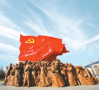 坐落于中央党校,由鲁迅美术学院师生集体创作的雕塑《旗帜》
