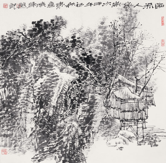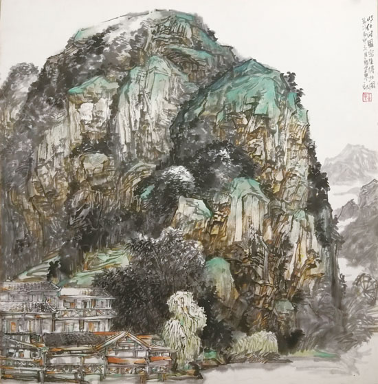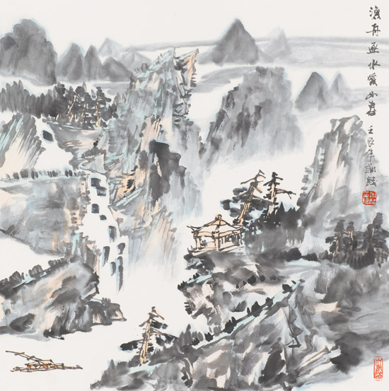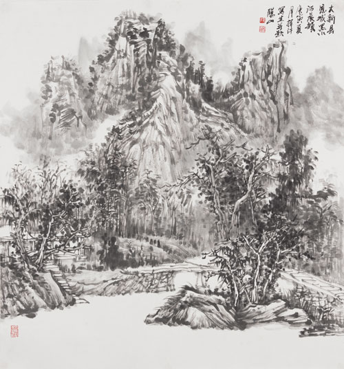 《大新县城黑水河晨韵》 97cm×90cm 2010年 纸本水墨
