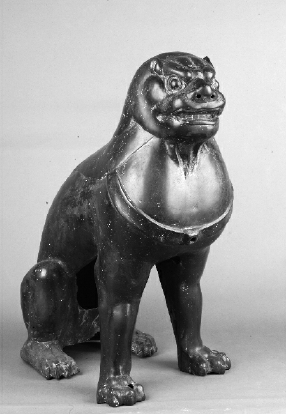 图中的这尊唐代鎏金铜狮原置于全国重点文物保护单位妙乐寺塔上,该塔位于河南省武陟县大虹桥乡东张村。