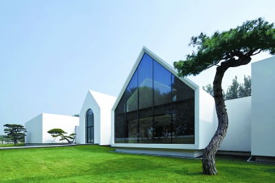 地处五环外的这家美术馆,总占地面积22000余平方米,室内展览面积约2200平方米。最醒目的,莫过于园区里种植的199颗松树,碗口粗的它们弯弯曲曲向上生长,散淡又倔强,一如王中军创办美术馆的初衷,“上世纪九十年代选择到影视行业创业,我并没有给自己设定多宏大的目标,后来拾起老本行画画和现在建美术馆,也是随性就好。”而体现倔强的是,他坚持这里不能做成商业氛围浓厚的艺术区,包括院子里的花草树木都要认真打理,今后引入的展览首要前提是具备美感。至于缘何选择以“松”命名,以及广种松树,他的解释是,这里的定位是具有东方属性,要让人在轻松看展中感知到这是一家中国人建造的美术馆。