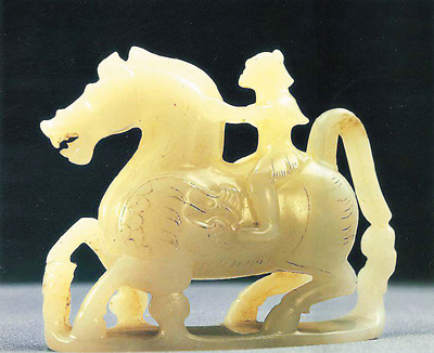 羽人玉奔马 西汉 陕西咸阳周陵公社新庄出土 咸阳市博物馆藏