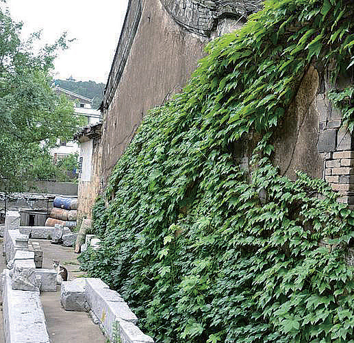 仅从外观上就可以做出判断,那是一幢两进式建筑,一前一后两个院落。外墙的墙皮早已被风雨和岁月剥蚀殆尽,砖石清晰可辨。后进院落的墙上密密麻麻的一片翠绿,好一路爬山虎。再定睛一瞅,就连那牛轭似的屋脊上,灰突突的断瓦间,竟也生了些许潦乱而稀疏的野草。