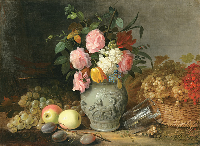 自18世纪末白俄罗斯就并入了俄罗斯帝国的版图。因此19世纪的白俄罗斯艺术家便跟随俄罗斯艺术发展的脚步,在俄罗斯艺术的基础上开始了自身的创作。于是,优秀的白俄罗斯静物画家赫鲁茨基在圣彼得堡获得了艺术教育。在此展览上展出了他的部分作品,《玫瑰和水果》《静物画:花儿和水果》一方面为凤凰彩票写实地描绘了花朵与果实,另一方面又呈现出它们的观赏性和装饰性;此外,优秀的风景画家亚丝诺夫斯基的《石头》和风俗画家西利瓦诺维奇的《军人和小伙子》)也同样获得了大家的喜爱。