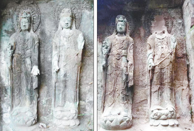 四川省安岳县木鱼山摩崖造像千年佛头被盗前后。 资料图片