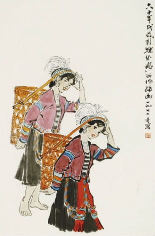 “我从漫画转到中国画,夙愿已久,抗日战争推动了我,苗族地区之行是个机会。 ” 20世纪40年代,叶浅予从漫画转向中国画。1942年,叶浅予深入到贵州黔西苗族地区写生,开始尝试用中国画的笔墨在贵州皮纸上进行创作,画了第一批苗族人物。这次写生和尝试让叶浅予领略了苗乡风采,但也感觉到漫画表现手法的局限,“几次尝试,逐渐明白漫画手法已不适用,新的表现方法必须另辟蹊径,这就是我向中国人物画传统画法追求的开始” ,叶浅予说。