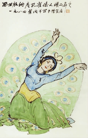 20世纪50年代,叶浅予的舞蹈人物画开始趋于成熟。 《于阗装》 《共饮一江水》 《凉山舞步》轻松而别致,浓淡、干湿、冷暖搭配均合情合理,无不透出奔放俊逸、潇洒浪漫之气。这一时期所画的印度舞已是另一种面目,如《婆罗多舞》 ,洒脱之极; 《献花舞》 ,妩媚之极。这些作品均取材于叶浅予平时的现场速写,描绘的是少数民族载歌载舞的画面,从形象和服饰上看是写实的,不过叶浅予这时所追求的绘画目标是“不画幕中之舞,要画胸中之舞” 。