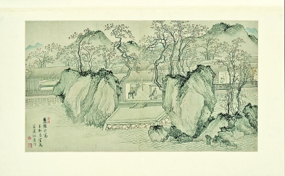 近距离观看展柜中的作品,有唐寅《双鉴行窝图》、文徵明《猗兰室图卷》、董其昌《仿大痴山水卷》、王时敏《山水轴》等,都是难得一见的名家名作。画面风格稳健平衡,线条文雅,笔触疏闲,淡墨渲染,透露着淡泊萧散的传统文人气质。