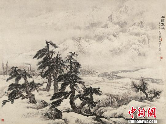 11日,尺幅达到33平尺的关山月巨幅精品《北国风光》亮相广州,这幅作品被誉为是傅抱石和关山月为人民大会堂迎宾厅合作完成的以《沁园春·雪》词意为创作背景的《江山如此多娇》的姊妹篇。